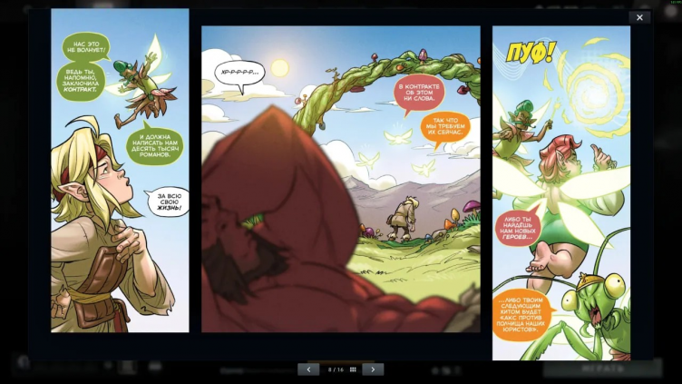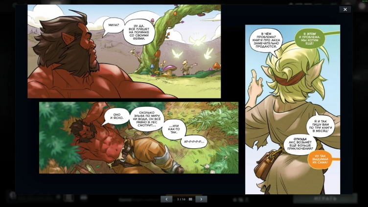 С началом кроссовета Dota 2 x Monster Hunter в игре стал доступен новый комикс, посвященный вселенной Доты. Он рассказывает о писательнице Миле Г., которая зарабатывает публикацией книг о приключениях