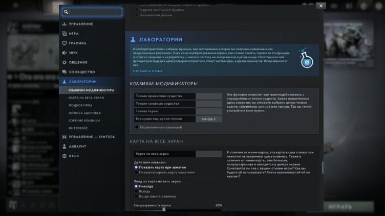 Участник западноевропейского коллектива Весь мир, World MOUZ Россия, Russia, RU Даниял «yamich» Лазебный на личном канале в Telegram показал, с какими настройками интерфейса, мини-карты и клиента он играет в Dota 2.