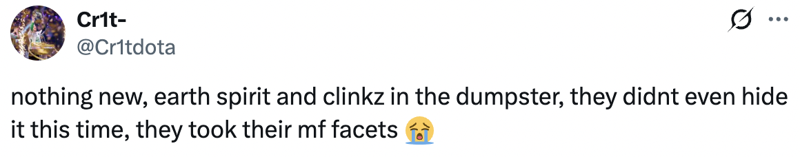 Ничего нового: Earth Spirit и Clinkz в помойке. На этот раз они даже не пытались это скрыть – у них просто забрали их чертовы аспекты.