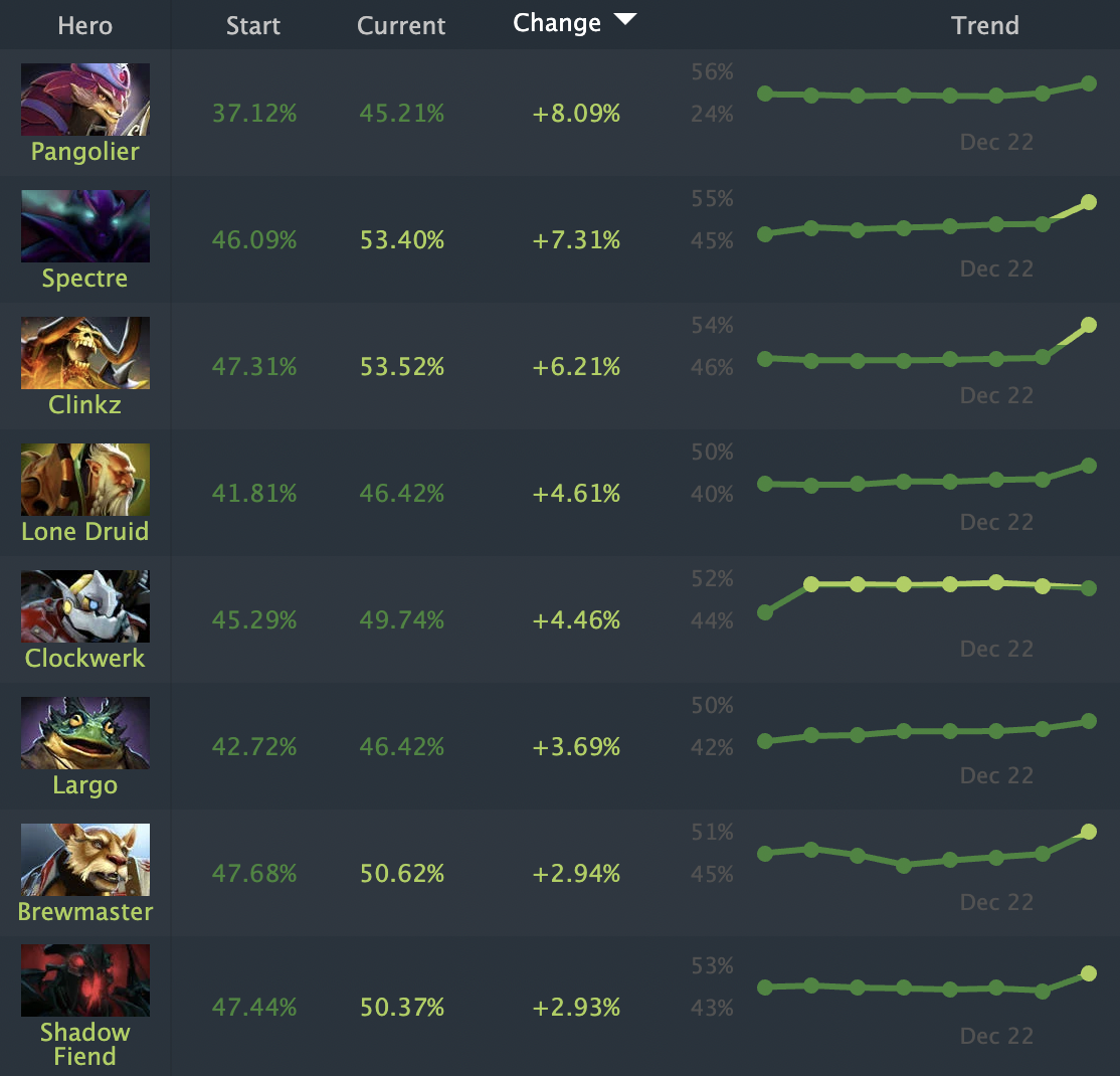 Clinkz (винрейт вырос на 6.21%). Статистику предоставил портал Dotabuff.