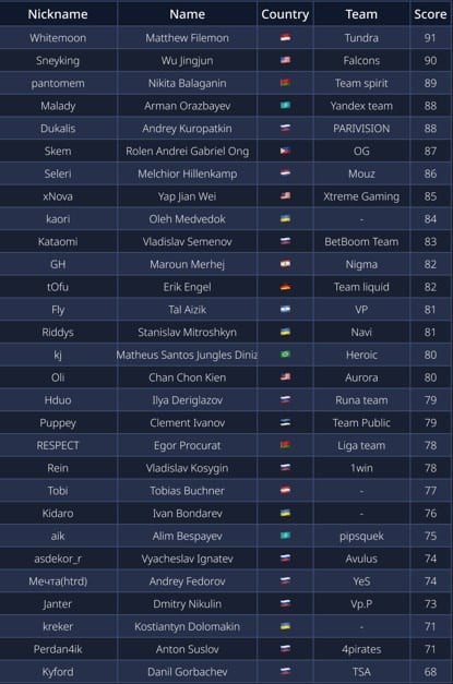 Любимый Ssnov, который вновь второй.Также мы открывали с вами совсем новые имена на про сцене. Привет игрокам из академок, а также совсем молодым ребятам по 15-16 лет из паблика.