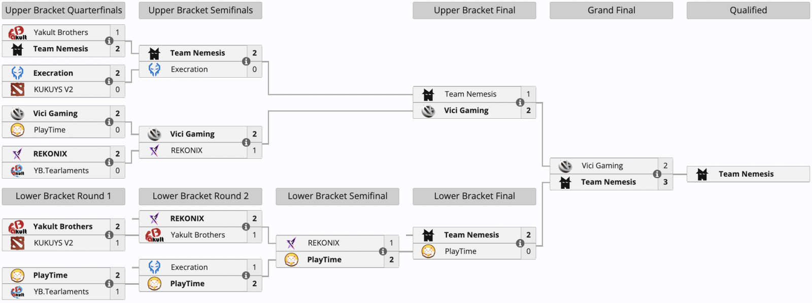 Team Nemesis стал победителем закрытой азиатской квалификации к предстоящему чемпионату PGL Wallachia Season 7 по Dota 2. В гранд-финале отборочных Team Nemesis со счетом 3:2 обыграла состав