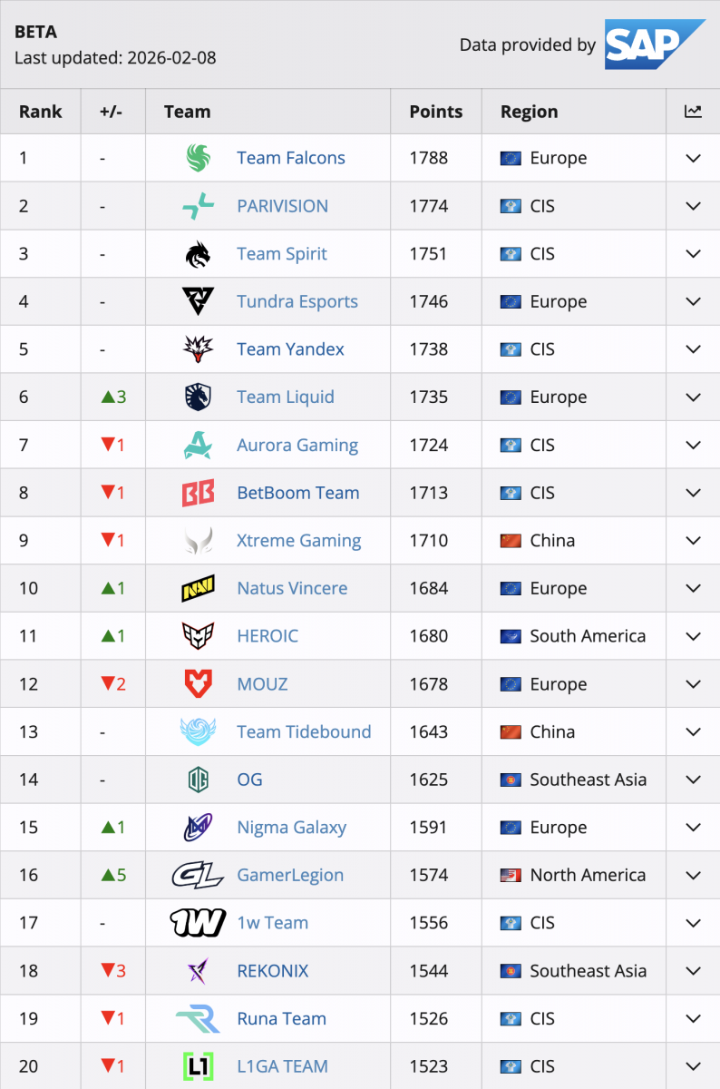 Портал Liquipedia перезапустил собственный рейтинг сильнейших команд мира по Dota 2 согласно модели Glicko 2, учитывающей несколько параметров.