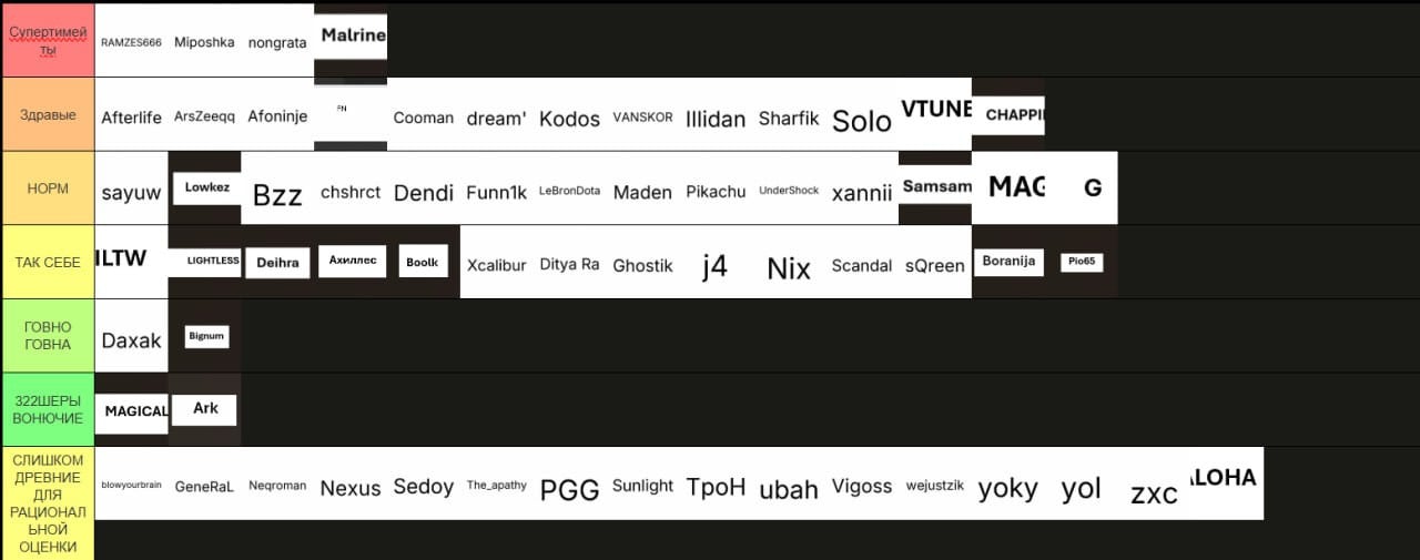 Ринат «KingR» Абдуллин на личном канале в Telegram составил тир-лист игроков, с которыми он выступал в одной команде.