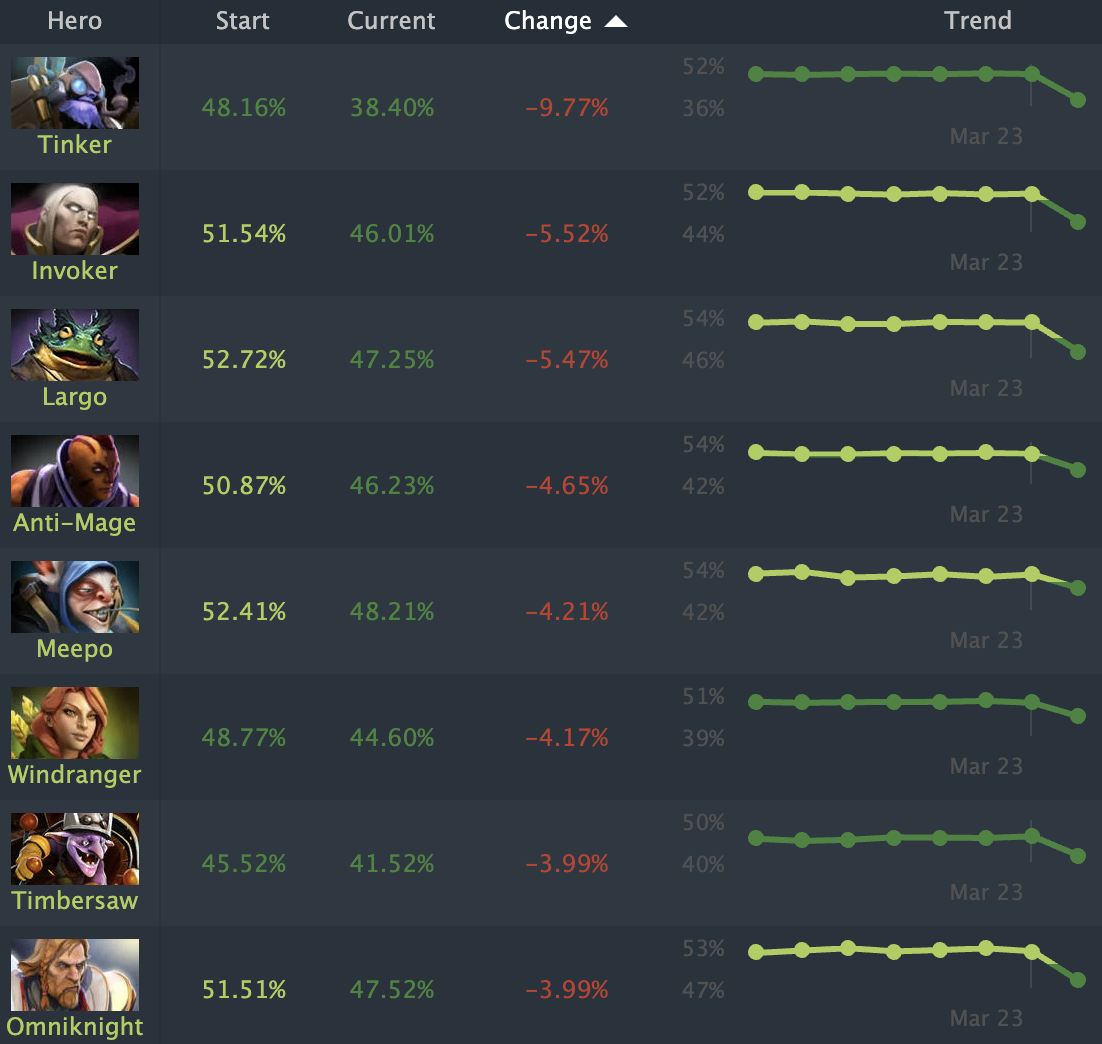 Largo – винрейт этих персонажей упал на 5.52% и 5.47% соответственно. Статистику предоставил портал Dotabuff.
