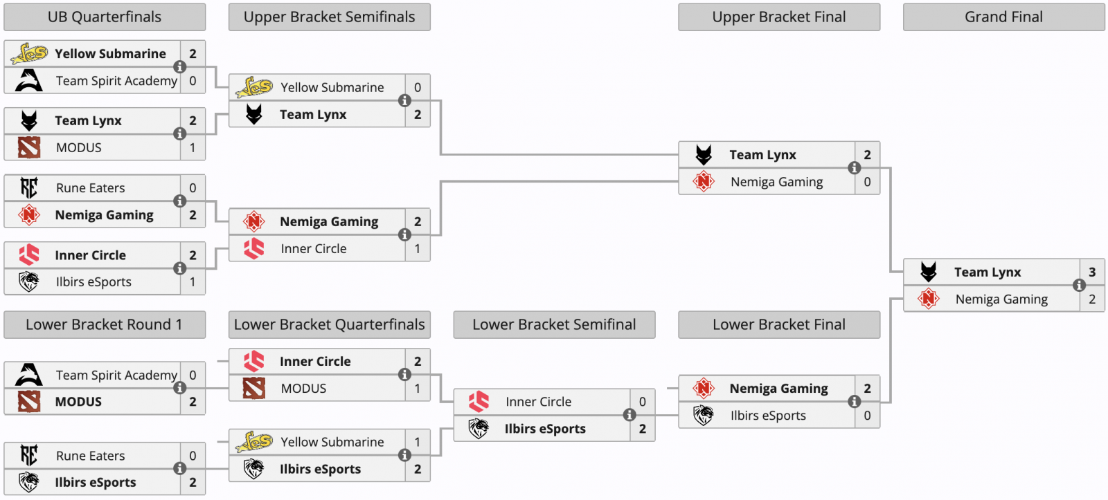 Коллектив Украина, Ukraine, UA Team Lynx стал победителем онлайн-турнира European Pro League Season 36 по Dota 2. В гранд-финале команда со счетом 3:2 обыграла состав Россия, Russia, RU Nemiga Gaming.